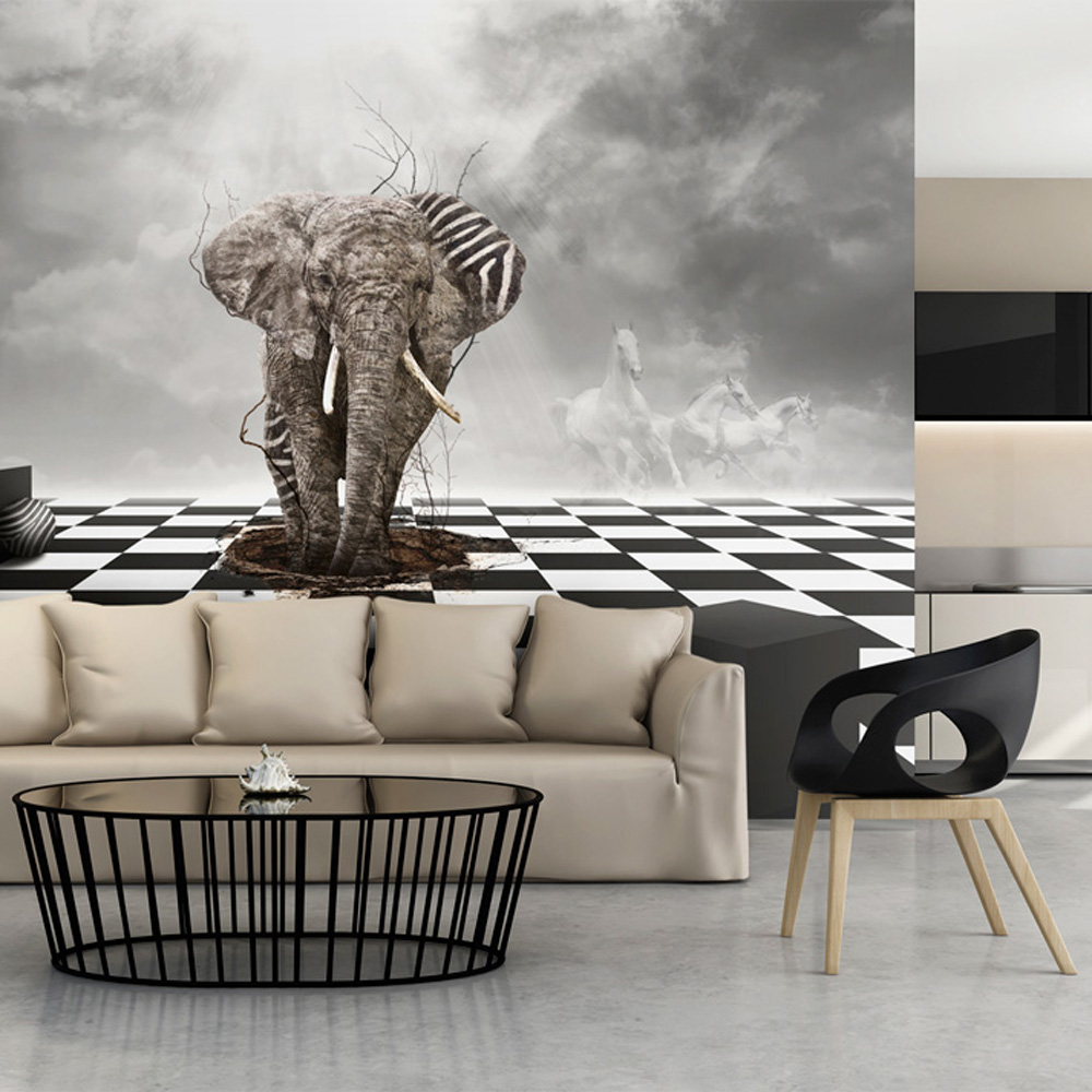 Grå Artgeist Fototapet Elefant Getaway Fra Afrika er den perfekte vægdekoration til dit hjem. Dette fototapet kommer i flere størrelser., Så du kan finde den ideelle pasform til dit rum.